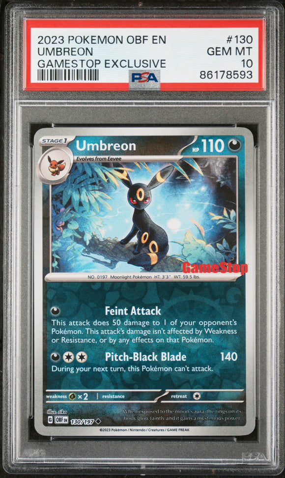 2023 POKEMON OBF EN-OBSIDIAN FLAMES #130 UMBREON GAMESTOP EXCLUSIVE PSA 10