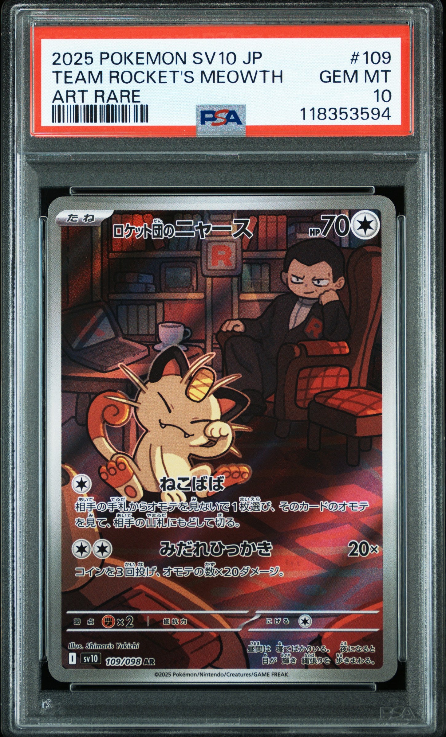 2025 POKEMON JAPANESE SV10-GLORY OF TEAM ROCKET #109 TEAM ROCKET'S MEOWTH ART RARE PSA 10