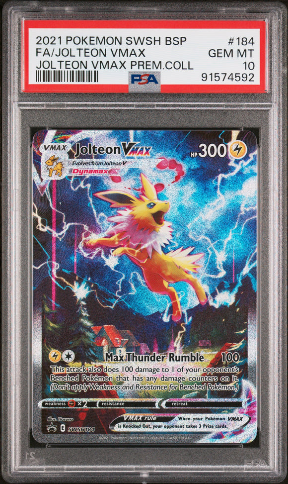 2021 POKEMON SWSH BLACK STAR PROMO #184 FA/JOLTEON VMAX PSA 10