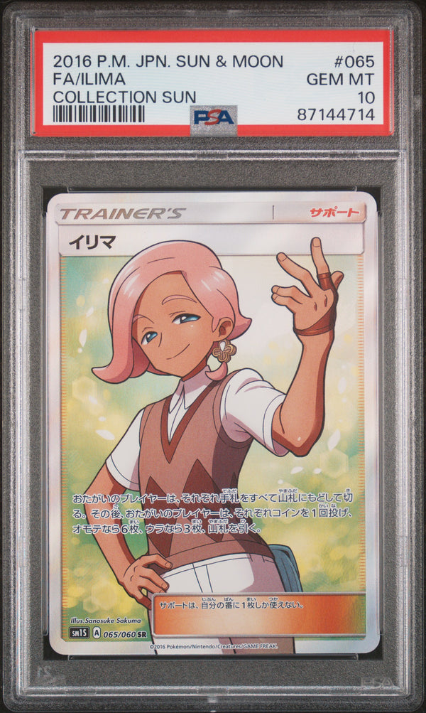 2016 Pokémon Japanese Sun & Moon Collection Sun #065 Ilima FA (PSA 10)